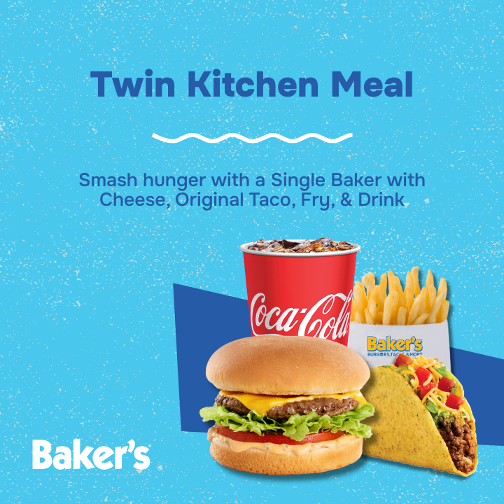 Double Baker W/Cheese, Ground Beef Taco, Fries, and a Fountain Drink
